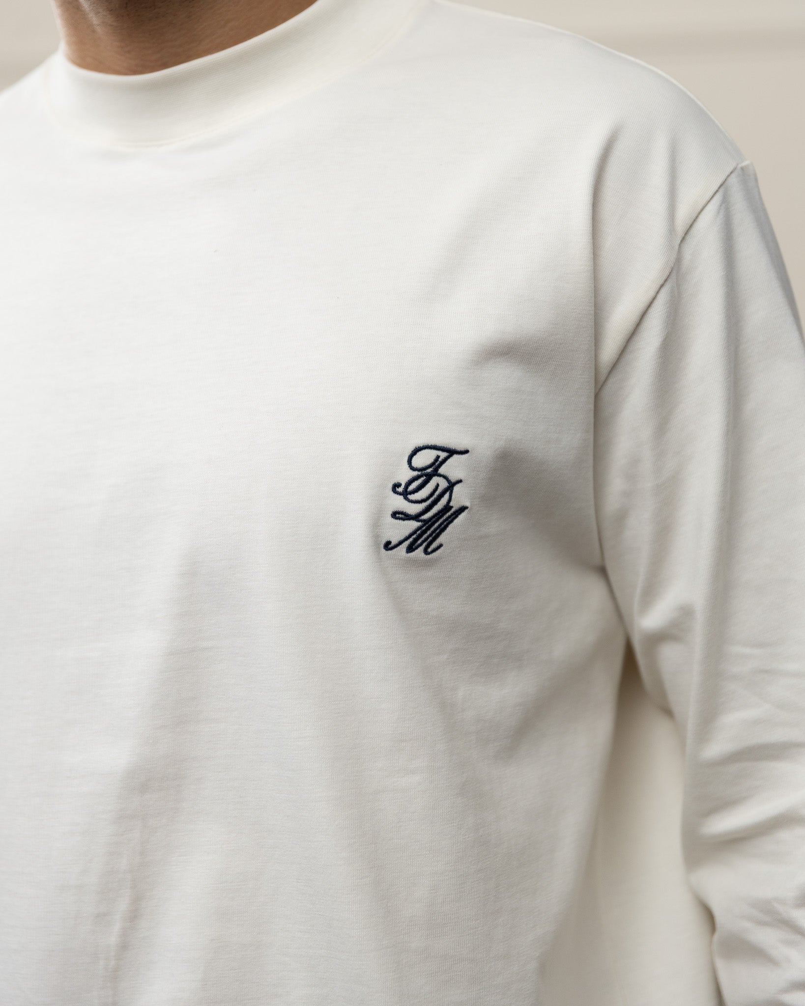 Finished with a front monogram embroidery, fine rib cuffs, drop shoulder-fit, and a woven logo patch on the left sleeve.